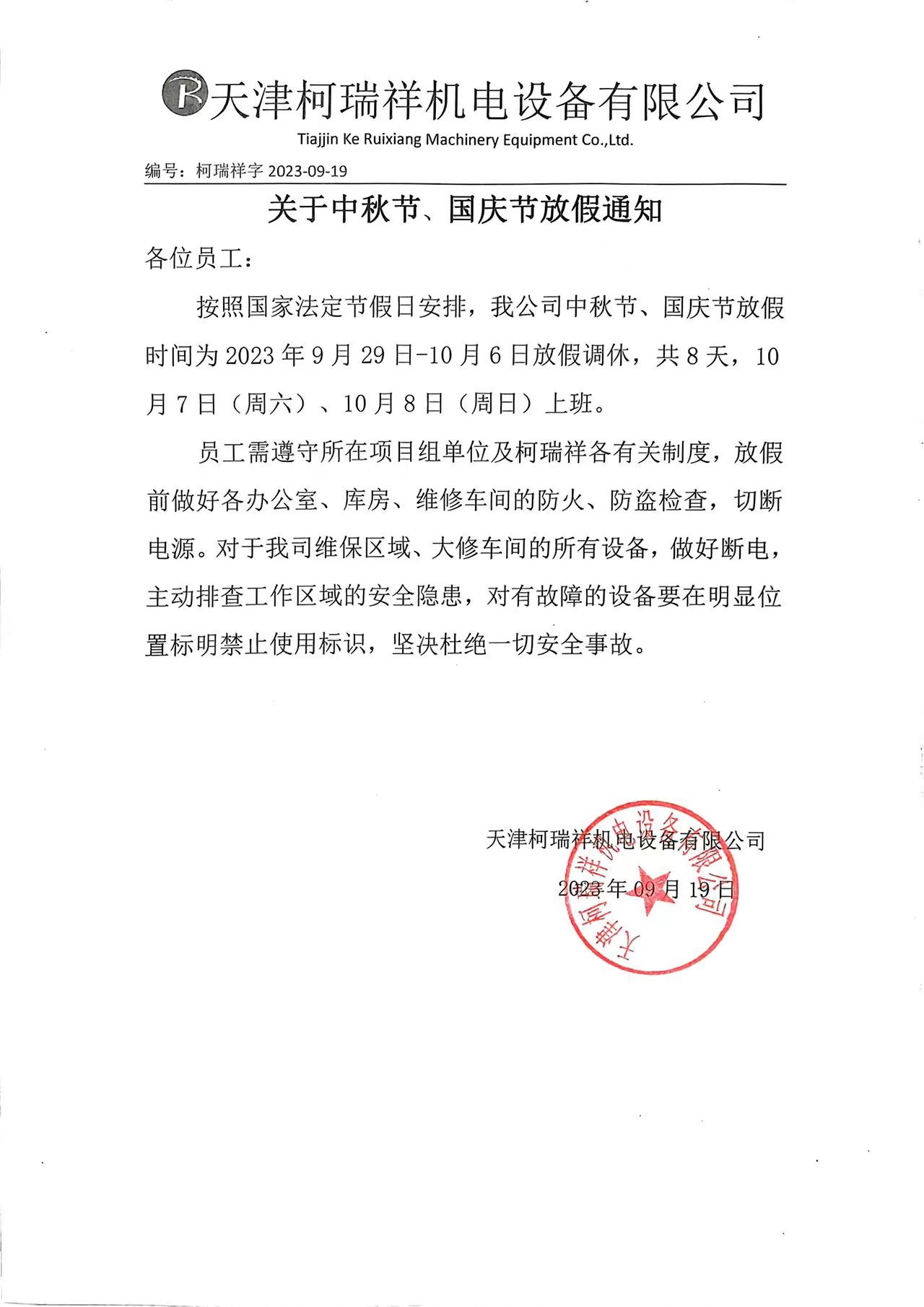 2023年中秋節(jié),國(guó)慶節(jié)放假通知